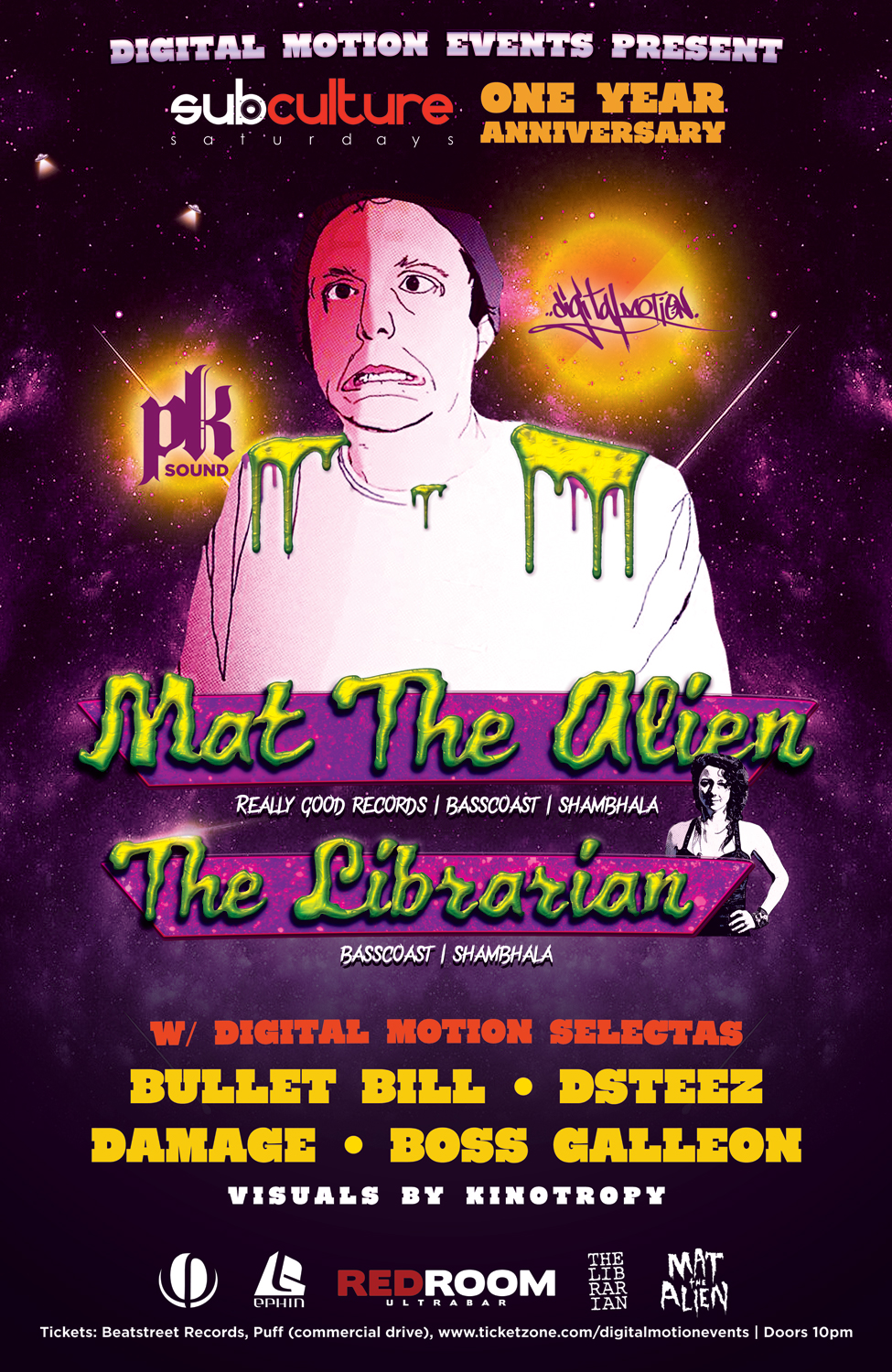 SUBculture Saturday's 1YR anniversary: Mat the Alien, The Librarian, Bullet Bill , DSTEEZ, Damage , Boss Galleon @ The Red Room Apr 11 2015 - Feb 18th @ The Red Room