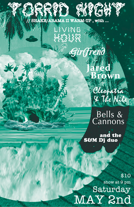 Its a TORRID/SHAKEARAMA II WARM-UP with ...: LIVING HOUR (Winnipeg), Girlfrend, JARED BROWN (Nova Scotia), CLEOPATRA & THE NILE, Bells & Cannons
