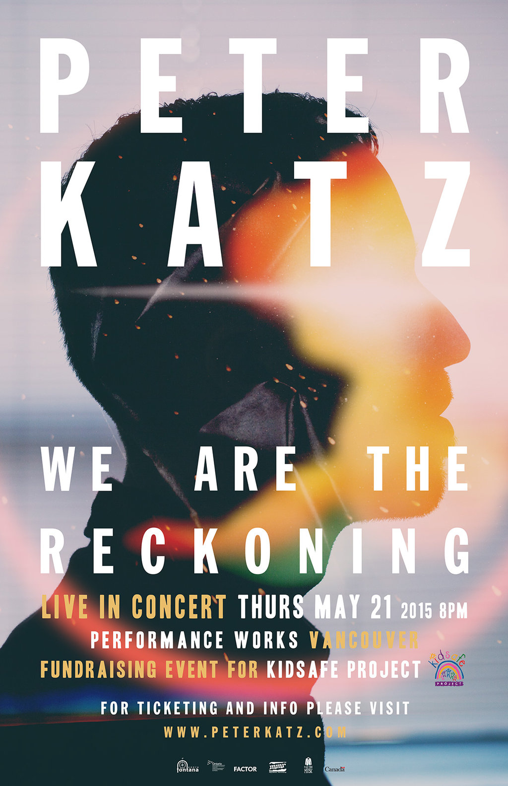 JUNO Nominee Peter Katz will bring his "We are the Reckoning" tour to Vancouver on May 21, all in support of local charity, KidSafe! Proceeds from the event will help KidSafe provide safety, nutritious meals, and fun activities to 340 vulnerable local kids this summer break.
