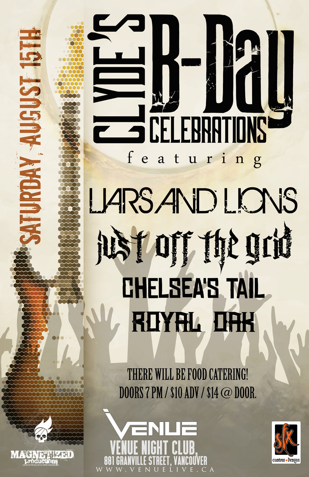 Clyde's B-Day Celebrations Featuring Liars and Lions / Just off The Grid / Chelsea's Tail and Royal Oak.