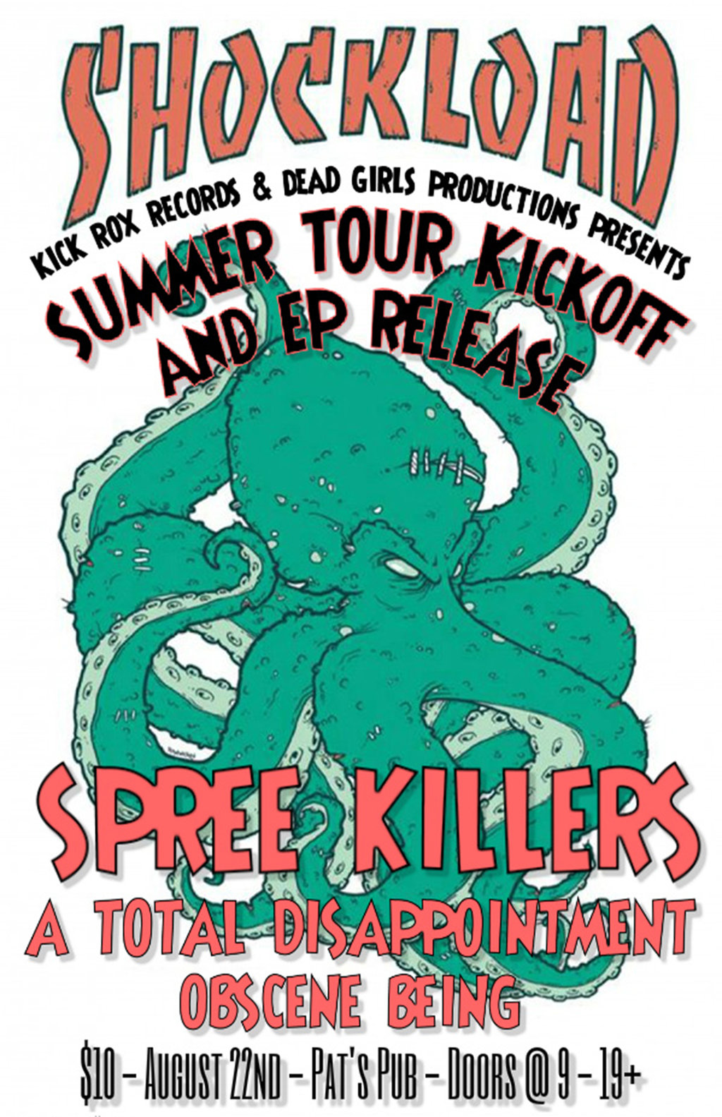 Shockload Tour Kick-Off and EP Release Show: Shockoad, Spree Killers , A Total Disappointment, Obscene Being @ Pat's Pub Aug 22 2015 - Jan 9th @ Pat's Pub
