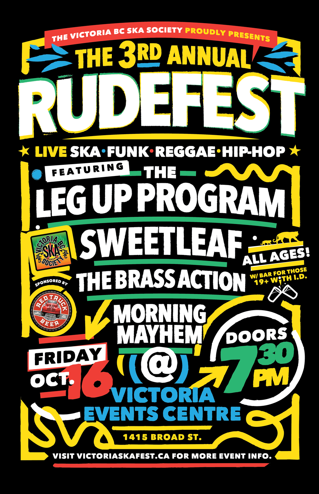 RUDEFEST 2015 will be the first event of our fall season. It follows up where the VBCSS and UVIC Ska/Reggae Club left off... That is providing a high quality ALL AGES event with wicked ska and reggae bands that will make you dance and be happy for hours and hours.