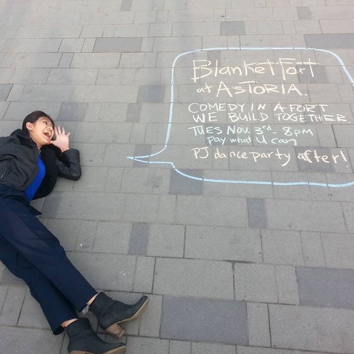 We meet at the Astoria at 8pm. Our host, Emma, brings blankets, non-denominational holiday lights and pillows. We bring our PJs and rig up a 30+ person BlanketFort in which we drink beers and listen to jokes and stories from seasoned Vancouver comedians and new storytellers.