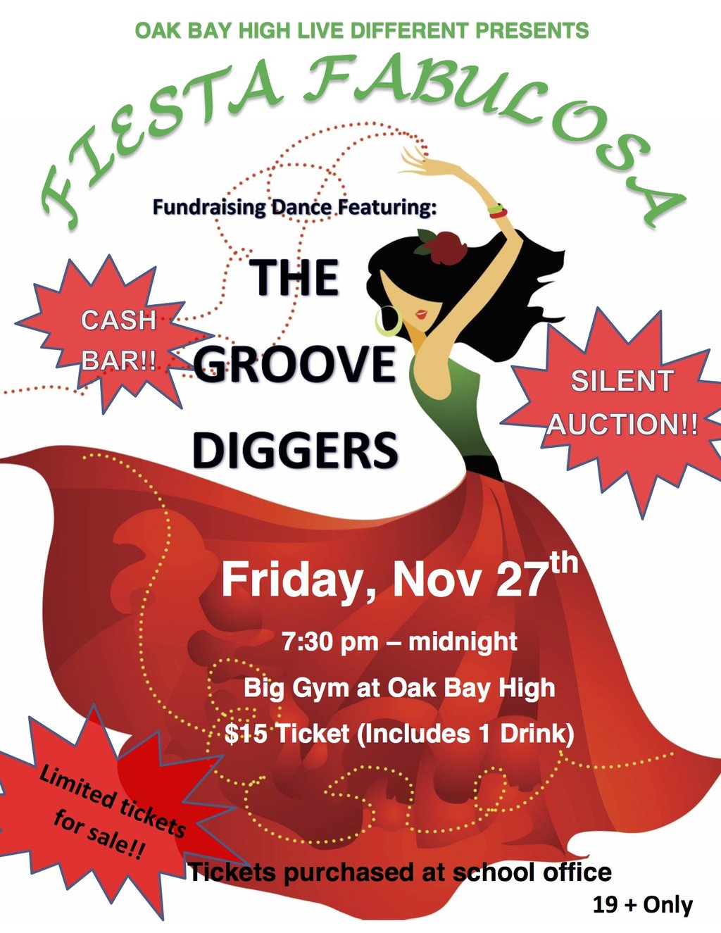 Fiesta Fabulosa Live Different Fundraising Dance: Groove Diggers @ Oak Bay High Theatre Nov 27 2015 - Jan 11th @ Oak Bay High Theatre