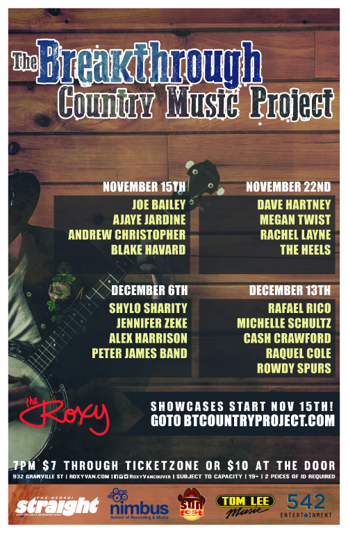 The Breakthrough Country Music Project: Rafael Rico, Michelle Schultz , Cash Crawford, Raquel Cole, Rowdy Spurs  @ The Roxy Dec 13 2015 - Mar 24th @ The Roxy