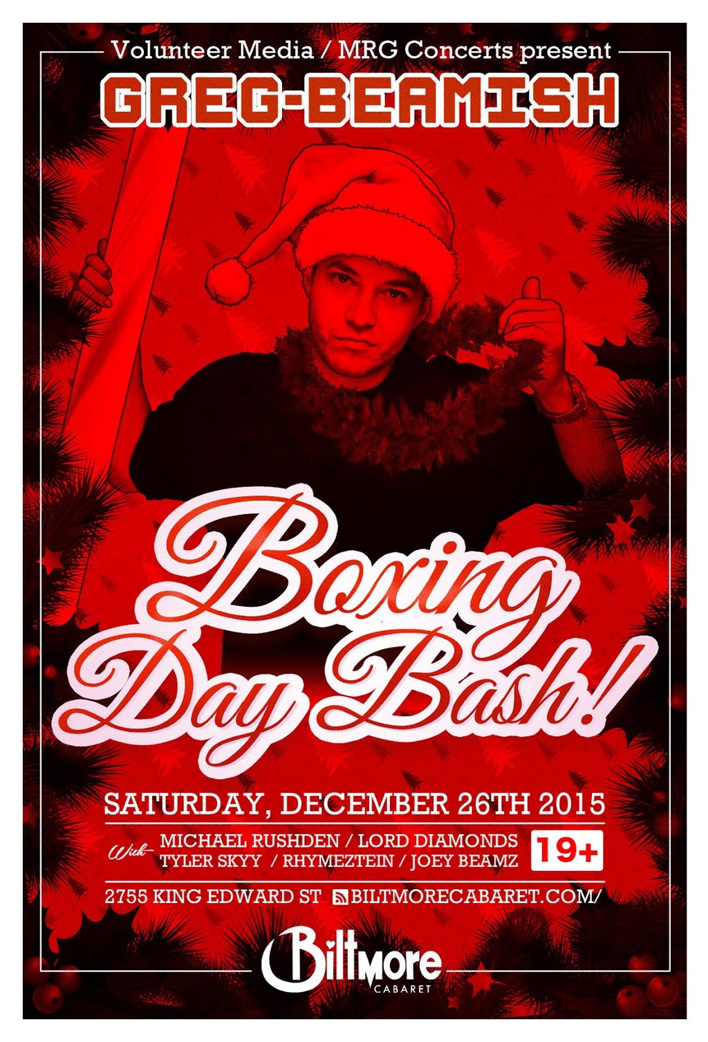 Greg Beamish Boxing Day Bash: Greg Beamish, Michael Rushden, Lord Diamonds, Tyler Skyy, RZ aka Rhymeztein, Joey Beams @ The Biltmore Cabaret Dec 26 2015 - Jan 2nd @ The Biltmore Cabaret