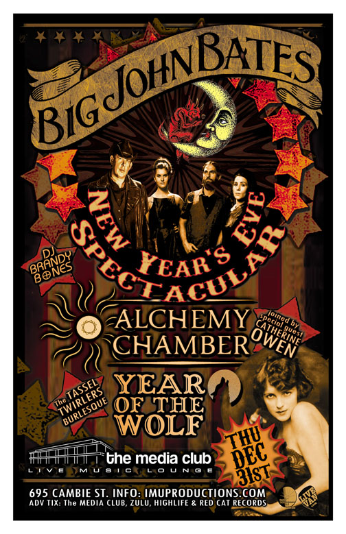. Thursday, December 31st IMU presents BIG JOHN BATES NEW YEAR'S EVE SPECTACULAR! w/ ALCHEMY CHAMBER, YEAR OF THE WOLF, DJ BRANDY BONES & The TASSEL TWIRLERS Burlesque Beauties @ The Media Club, 695 Cambie St. Doors 9pm . Show 10pm . $15 advance tix @ Zulu, HighLife, Red Cat & http://www.ticketzone.com/nyespectacular . $20 at the door.