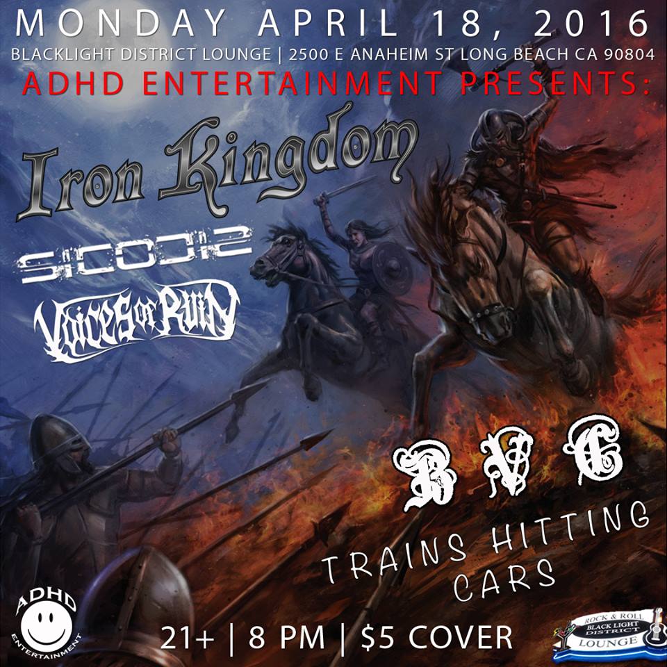 Iron Kingdom, Sicosis, Voices Of Ruin, Black Vulture Conspiracy, Trains Hitting Cars @ Blacklight District Lounge Apr 18 2016 - Jan 11th @ Blacklight District Lounge