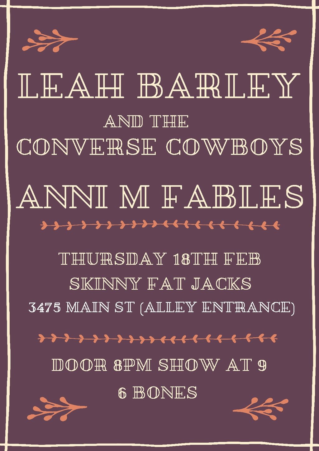 Leah tells her bluesy-folk tales of love, loss, epic bike rides, and broken homes with beautiful tones and a range that will make your hair stand on end.