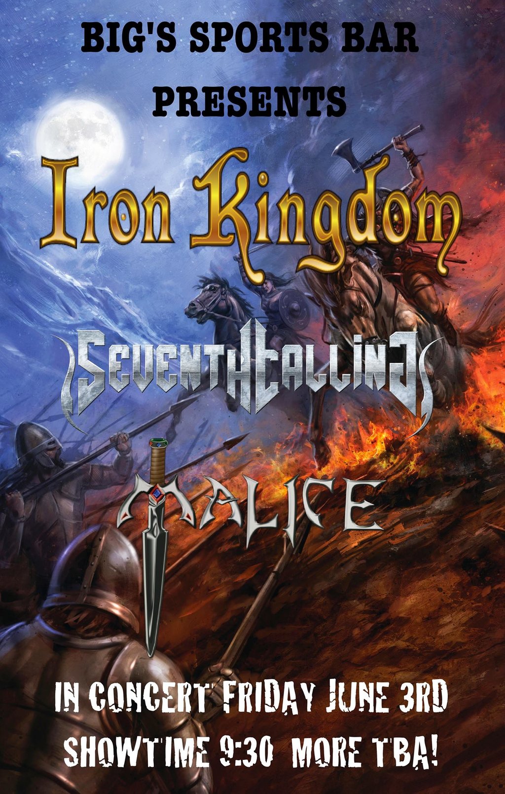 Iron Kingdom, Seventh Calling, Malice @ Big's Sports Bar Jun 3 2016 - Jan 11th @ Big's Sports Bar