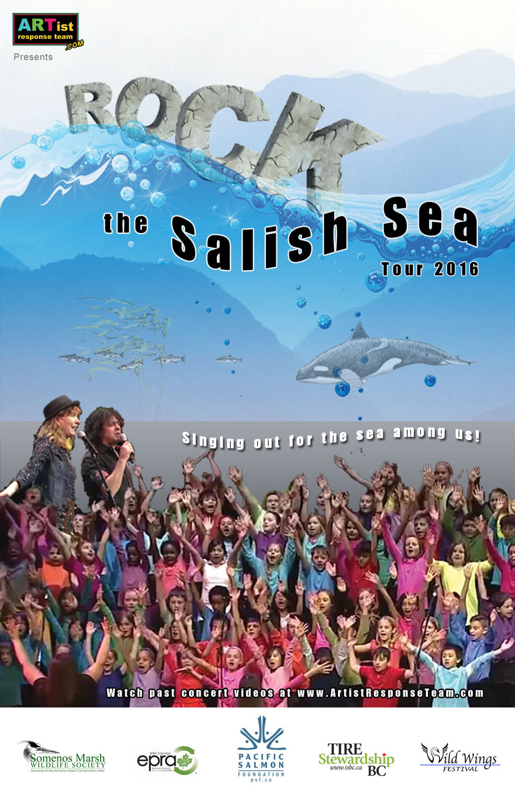 It’s Rock the Salish Sea Tour 2016 – an “eco” rock concert at the Cowichan Performing Arts Centre featuring The Wilds band, with Holly Arntzen and Kevin Wright performing original ocean hits including The Watershed Song and Salish Sea, and appearing with over 200 Saltwater Singers from Alex Aitken School. Proudly supported by the Pacific Salmon Foundation, Tire Stewardship BC and the Electronic Products Recycling Association, Rock the Salish Sea is dedicated to help raise awareness and educate people on conservation and protection of our cherished inland ocean, the Salish Sea.