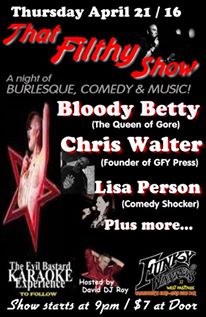 THAT FILTHY SHOW~~: Bloody Betty, CHRIS WALTER, LISA PERSON @ Funky Winker Beans Apr 21 2016 - Jan 1st @ Funky Winker Beans