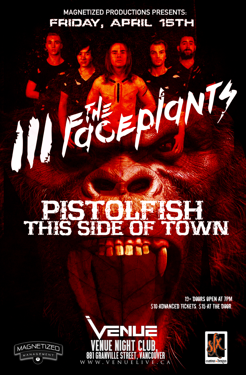Magnetized Productions Presents: The Faceplants w/ Pistolfish and This Side of Town. Friday, April 15th @ Venue, 881 Granville Street Vancouver, BC