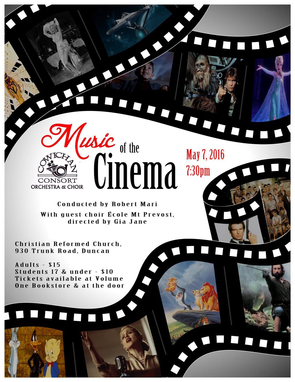 Music of the Cinema: Cowichan Consort Orchestra, Cowichan Consort Choir @ Duncan Christian Reformed Church May 7 2016 - Jan 11th @ Duncan Christian Reformed Church