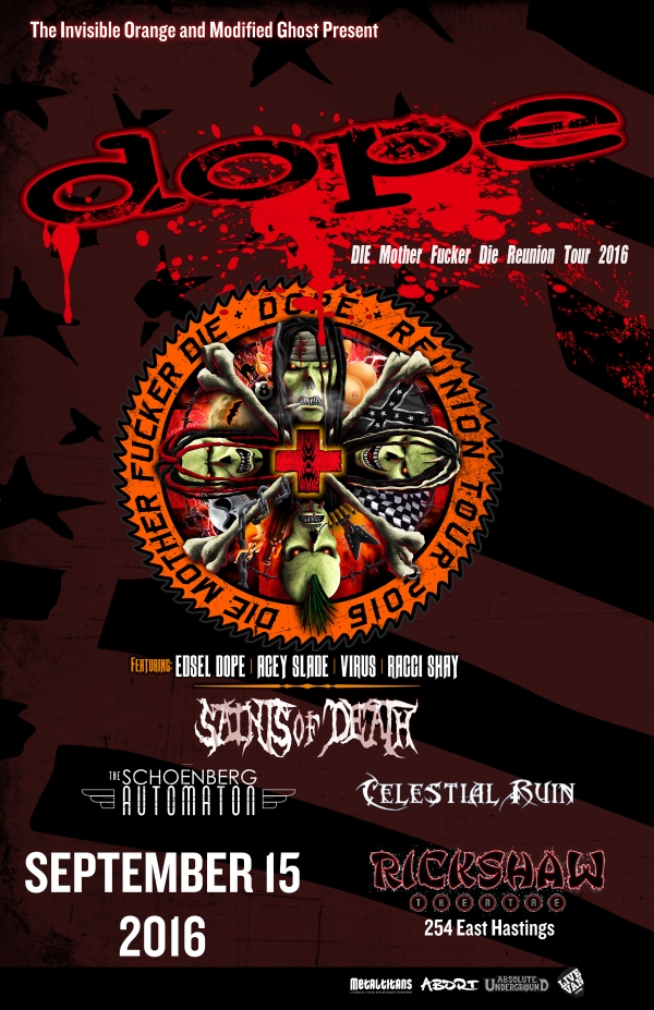 Dope, Saints of Death, The Schoenberg Automaton, Celestial Ruin @ Rickshaw Theatre Sep 15 2016 - Jan 11th @ Rickshaw Theatre