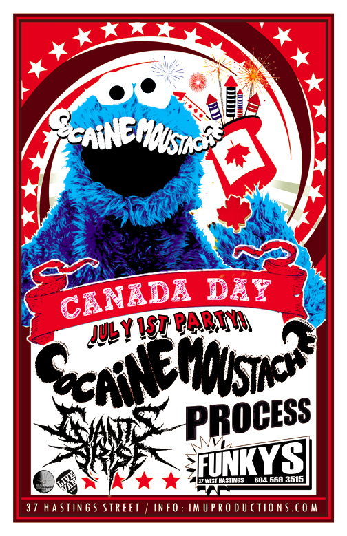 . Friday, July 1st IMU presents COCAINE MOUSTACHE Canada Day Party w/ PROCESS & GIANTS ARISE @ Funky Winker Beans, 37 W. Hastings. Show 9:30pm / $10 cover