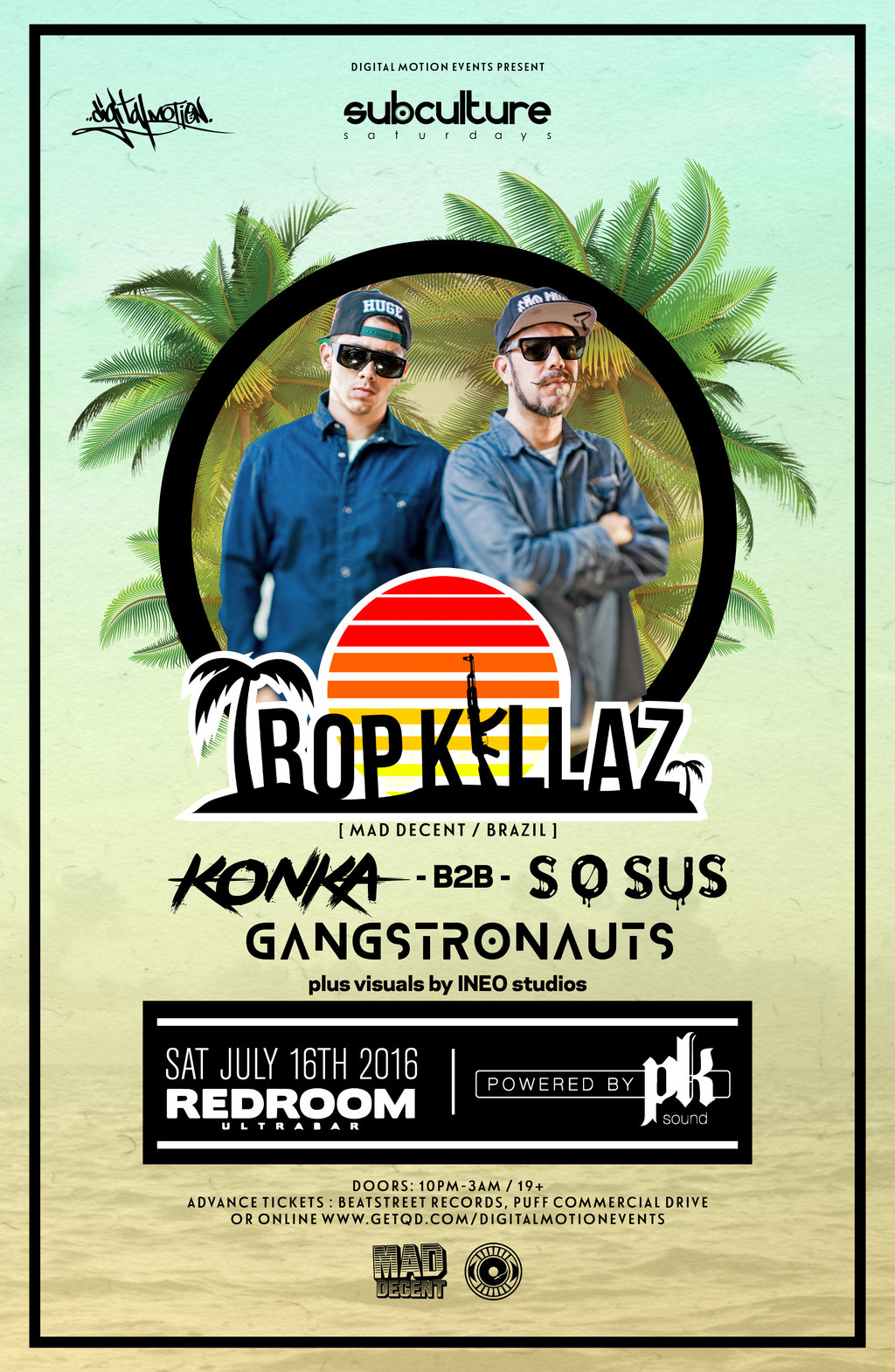 TROPKILLAZ, Konka b2b So Sus, Gangstronauts @ The Red Room Jul 16 2016 - Dec 14th @ The Red Room