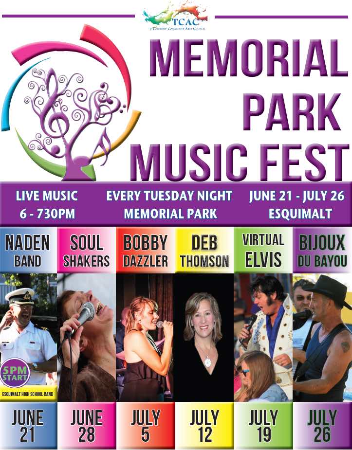 Grab your shades, sun-hats, and the whole family! Join us again for Memorial Park Music Fest - 6 glorious summer evenings in Esquimalt for free live outdoor music performances Tuesday nights June 21st - July 26th in historic Memorial Park. This year, we’ll create more amazing memories with our incredible lineup of old favourites and new performers.