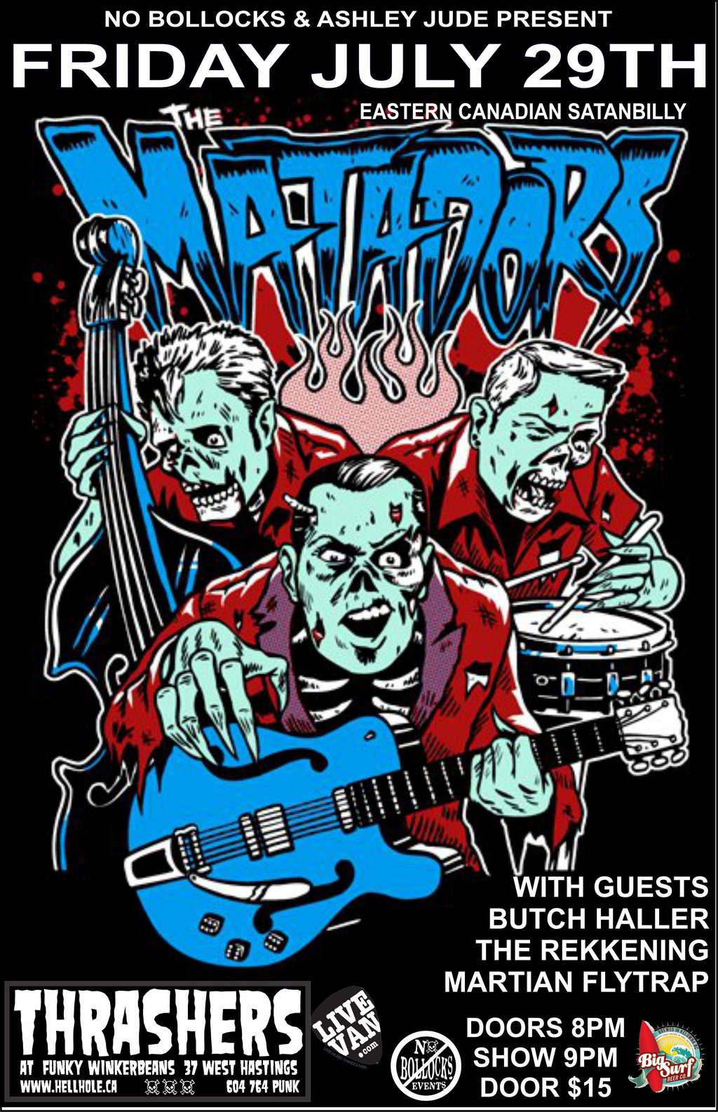 FRI JULY 29 * ASHLEY JUDE PRESENTS * SATANBILLY WITH THE MATADORS * AND GUESTS * BUTCH HALLER AND HIS CHESTERFIELD RAMBLERS * THE REKKENING * MARTIAN FLYTRAP *