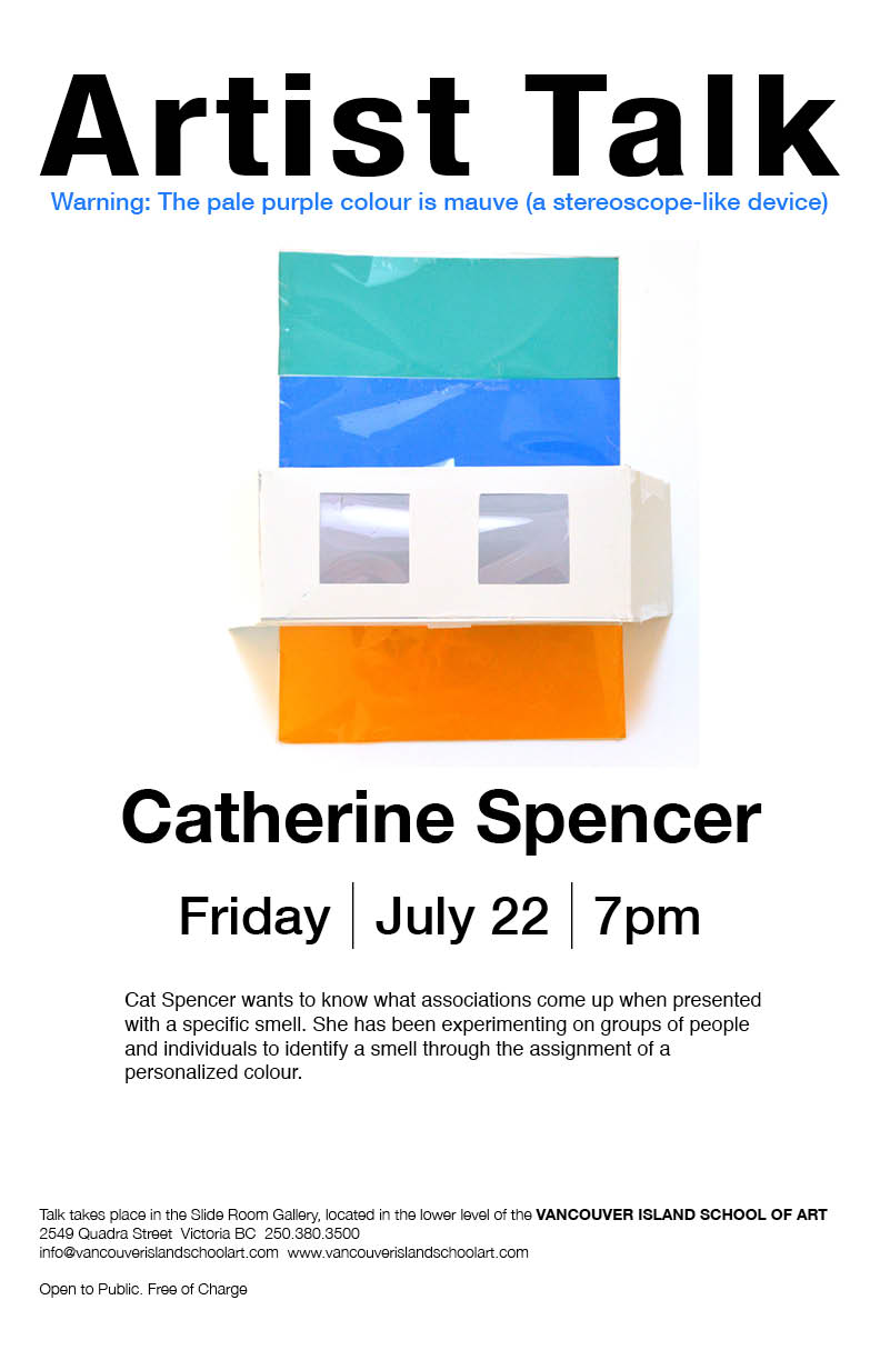 Cat Spencer wants to know what associations come up when presented with a specific smell. She has been experimenting on groups of people and individuals to identify a smell through the assignment of a personalised colour.