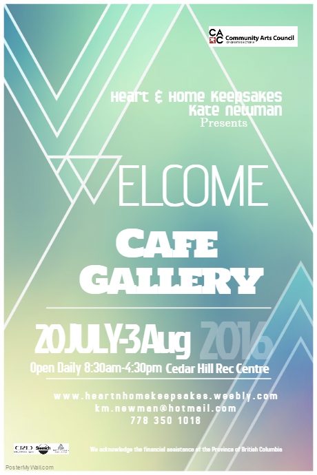 Wed. July 20th 2016 - Wed. August 3rd 2016 Art Centre at Cedar Hill - CACGV Cafe Gallery Victoria BC Free