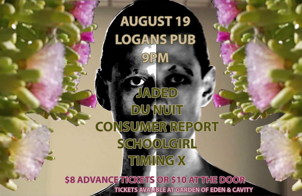 Frisson Friday: Timing X, SCHOOLGIRL, Consumer Report, Du Nuit, Jaded @ Logan's Pub Aug 19 2016 - Dec 16th @ Logan's Pub