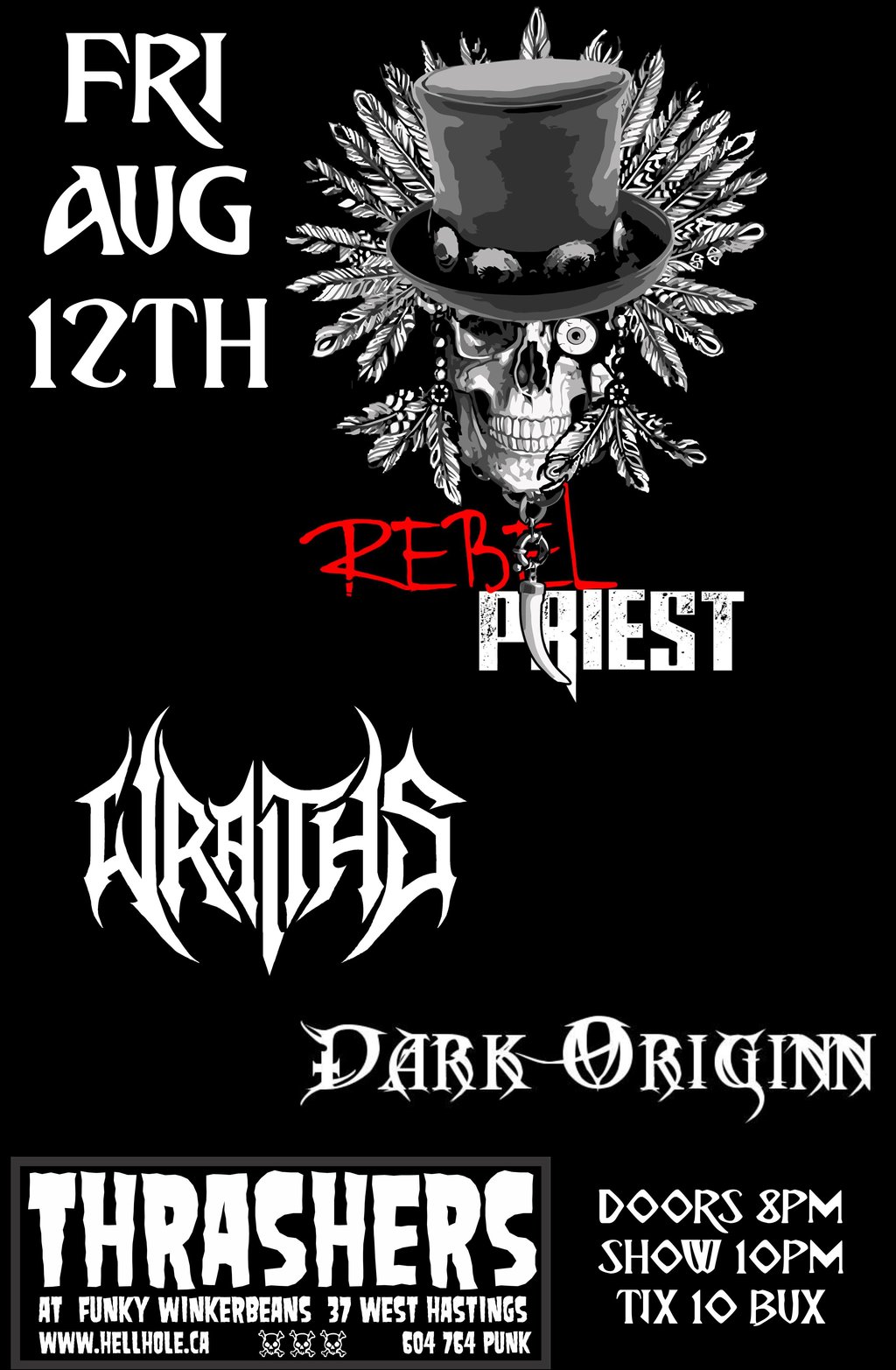 FRI AUG 12 * REBEL PRIEST * WRAITHS * DARK ORIGINN *