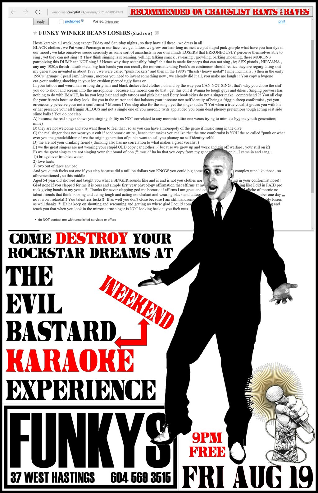 THE EVIL BASTARD KARAOKE EXPERIENCE PRESENTS A FRIDAY NIGHT KARAOKE SESSION~~: The Evil Bastard KARAOKE Experience @ Funky Winker Beans Aug 19 2016 - Feb 15th @ Funky Winker Beans