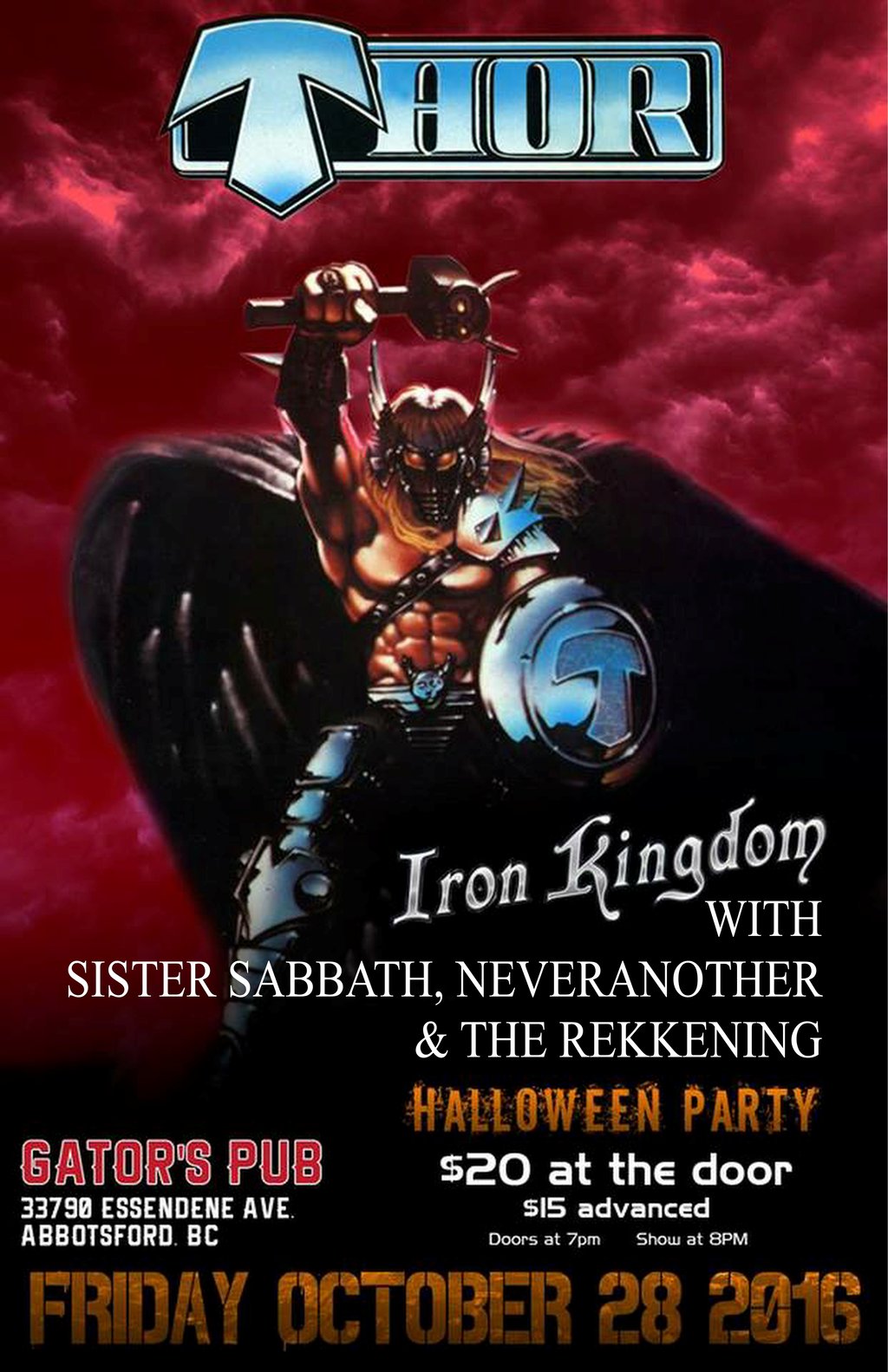 Thor, Iron Kingdom, Sister Sabbath, Never Another, THE REKKENING @ Gator's Pub Oct 28 2016 - Jan 6th @ Gator's Pub