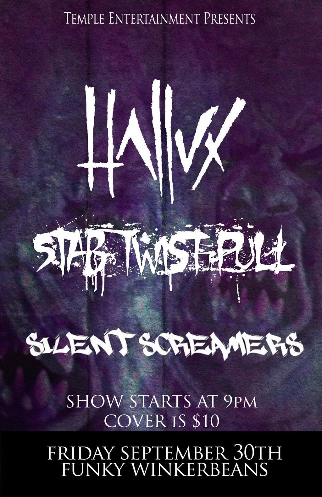 FRI SEPT 30 * TEMPLE ENTERTAINMENT PRESENTS * HALLUX * STAB.TWIST.PULL. [CGY] * SILENT SCREAMERS *