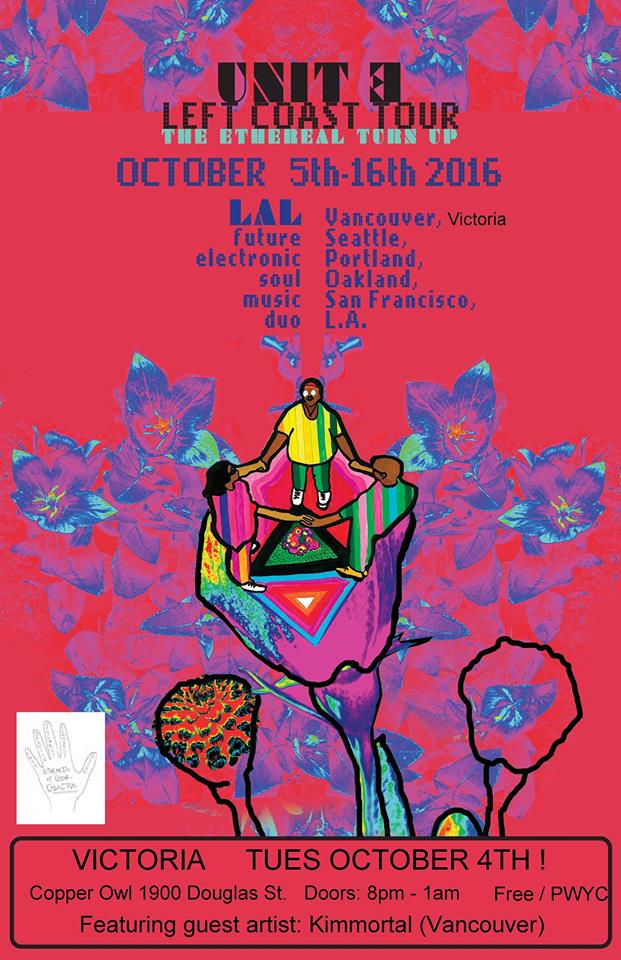 Unit 3 Left Coast Tour: The Ethereal Turn UP! Victoria show!: LAL, Kimmortal, Simone Blais, EVITA @ Copper Owl Oct 4 2016 - Jan 11th @ Copper Owl