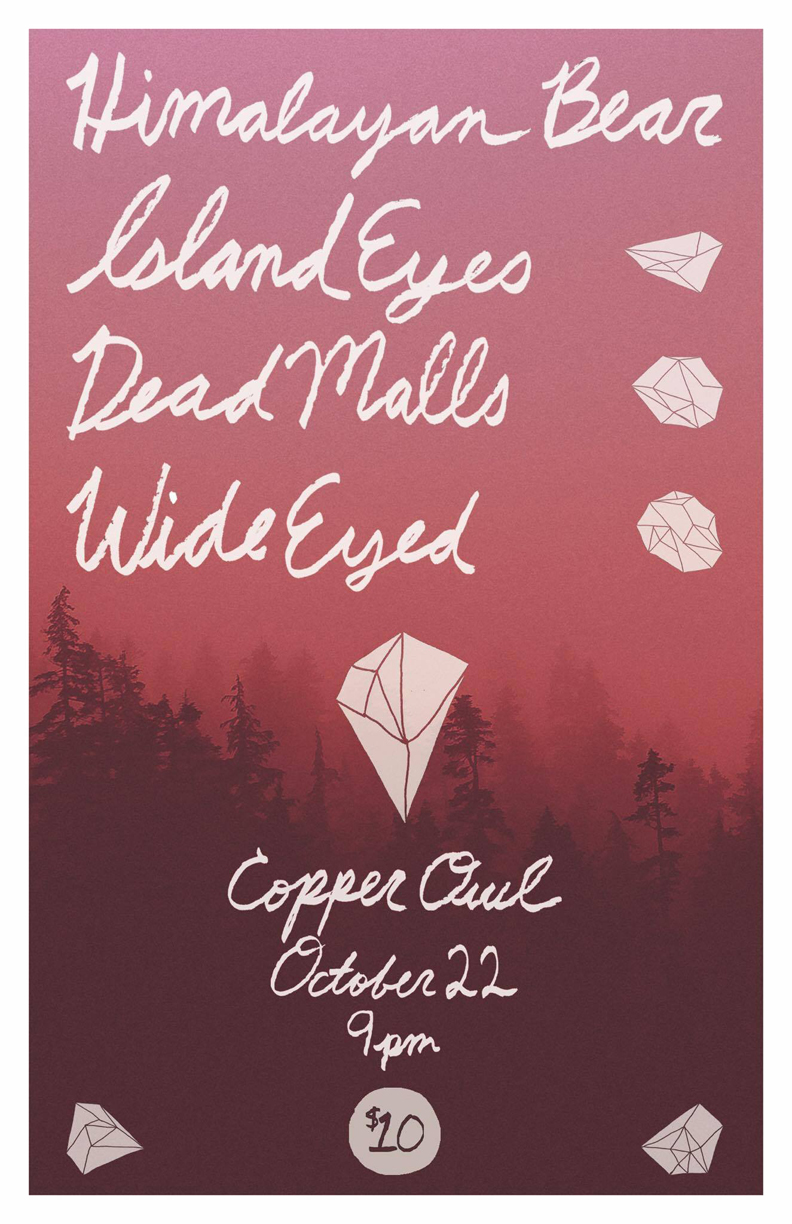 The Himalayan Bear, Island Eyes, Dead Malls, Wide Eyed @ Copper Owl Oct 22 2016 - Jan 12th @ Copper Owl