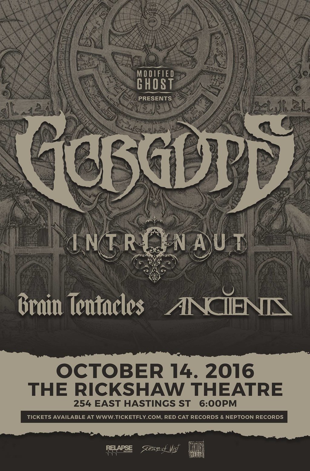GORGUTS, Intronaut, Brain Tentacles, Anciients @ Rickshaw Theatre Oct 14 2016 - Jan 7th @ Rickshaw Theatre