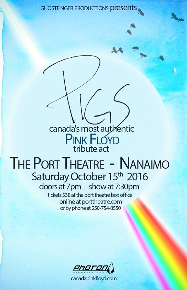 Canada’s Most Authentic Pink Floyd Tribute will be bringing their critically acclaimed show to select venues this fall. Their INSIDE & OUT show is packed full of all the classic Floyd favourites – from A Saucerful Of Secrets to The Division Bell – and for the first time ever, PIGS will be performing a number of Floydian solo songs from The Pros And Cons Of Hitchhiking to Rattle That Lock.