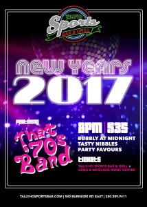 If you plan on having a wild night drinking lots of cold beverages, eating tasty nibbles and listening to that 70’s Band playing hits that everyone loves from the golden era, then come and ring in the New Year at The Tally-Ho sports Bar & Grill!
