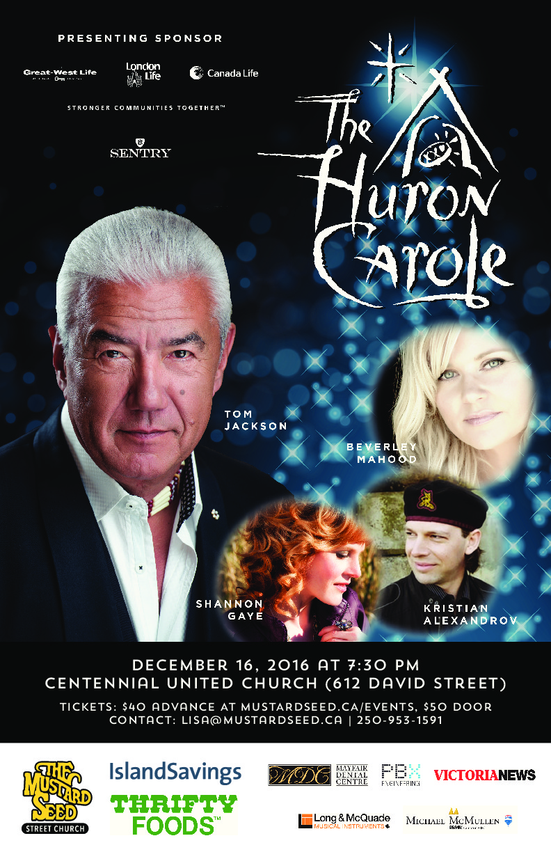 Tom Jackson and friends are back again this year with the Huron Carole Christmas musical! This Christmas story is filled with reflection, humor, passion, and the journey through darkness to light. Traditional, contemporary and signature music releases the spirit of Christmas into one’s heart. All proceeds from the Huron Carole performance in Victoria go to supporting the work of The Mustard Seed Street Church.