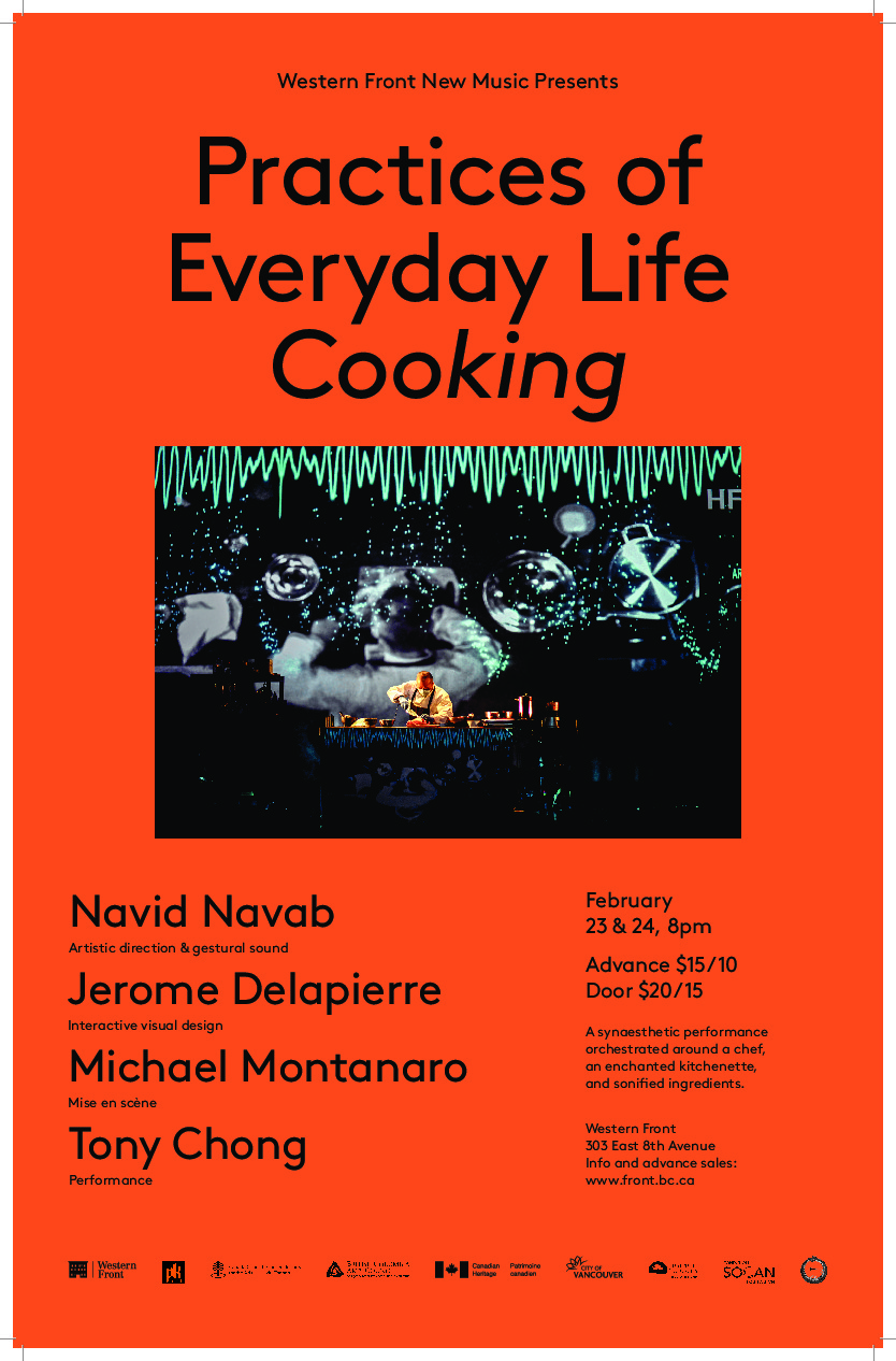 A knife rasps against another, onions vocalize their unfolding mutation into a cacophonous a cappella, sizzling oil slides into a downpour of Bartok-pizzicati, while seductive aromas immerse the viewer in a multi-sensory augmentation of everyday practices. Composer Navid Navab invites guests to delight every nuance of his enchanted kitchenette while joining chef Tony Chong in the act of performing music through open engagement with matter.
