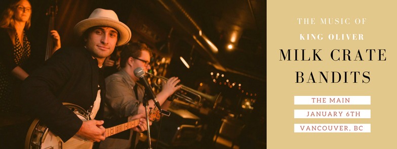 The Milk Crate Bandits are back at The Main in 2017! This time celebrating the music of King Oliver! Joe 'King' Oliver was Louis Armstrong's mentor and one of the most important figures in early jazz. The first set of the evening will consist mostly of music from the 1923 King Oliver Creole Jazz band sessions. The music is hot Chicago and New Orleans jazz featuring such classics as 'Snake Rag', 'Weather Bird Rag', 'Canal Street Blues', 'New Orleans Stomp' and whole heap of other great compositions!