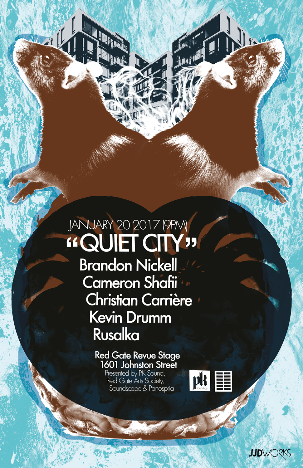 Quiet City is a series of deep-listening concerts in Vancouver, focused on live performances of experimental, electronic and improvised music in a comfortable and intimate setting. Red Gate Arts Society has taken over the Revue Stage on Granville Island effective January 2017. Please come out and show your support for our local music scene by joining us in kicking off another year of these concerts at this new venue!