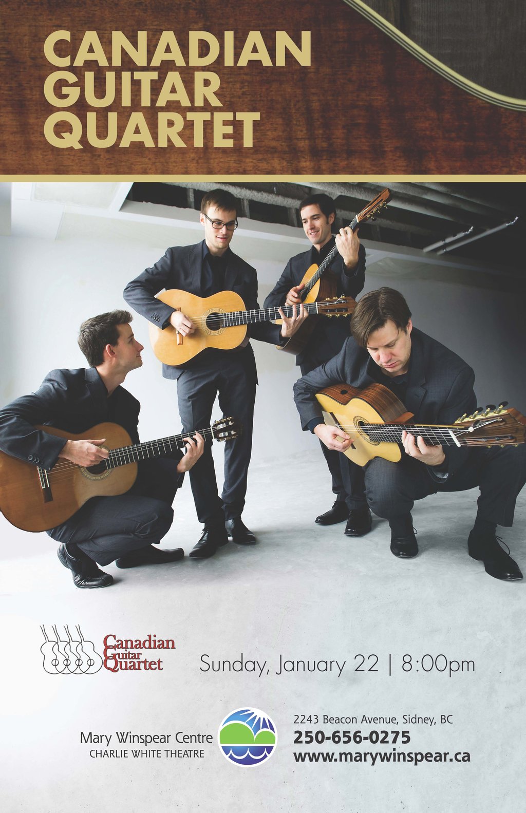 Since its debut in 1999, the Canadian Guitar Quartet has toured extensively in North and South America, from one standing ovation to the next, establishing a reputation as one of the finest guitar ensembles in the world. The CGQ has appeared with orchestra across Canada, and has recorded three critically acclaimed CDs. The mix of dynamic original music and classical masterpieces make a CGQ concert an unforgettable experience.