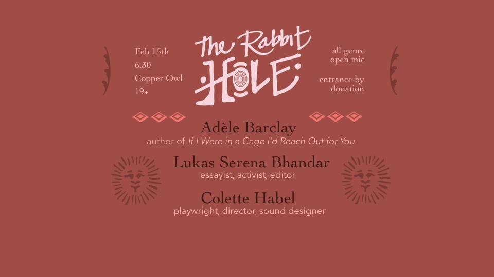 The Rabbit Hole featuring: ADÈLE BARCLAY, LUKAS SERENA BHANDAR, Colette Habel @ Copper Owl Feb 15 2017 - Dec 17th @ Copper Owl