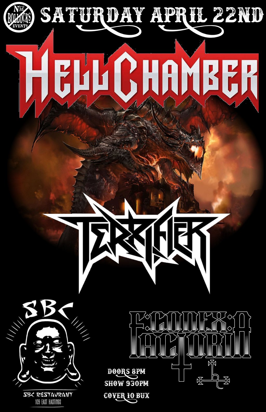 SAT APR 22 * HELLCHAMBER * TERRIFIER * CODEX: FACTORIA * SBC 109 EAST HASTINGS...