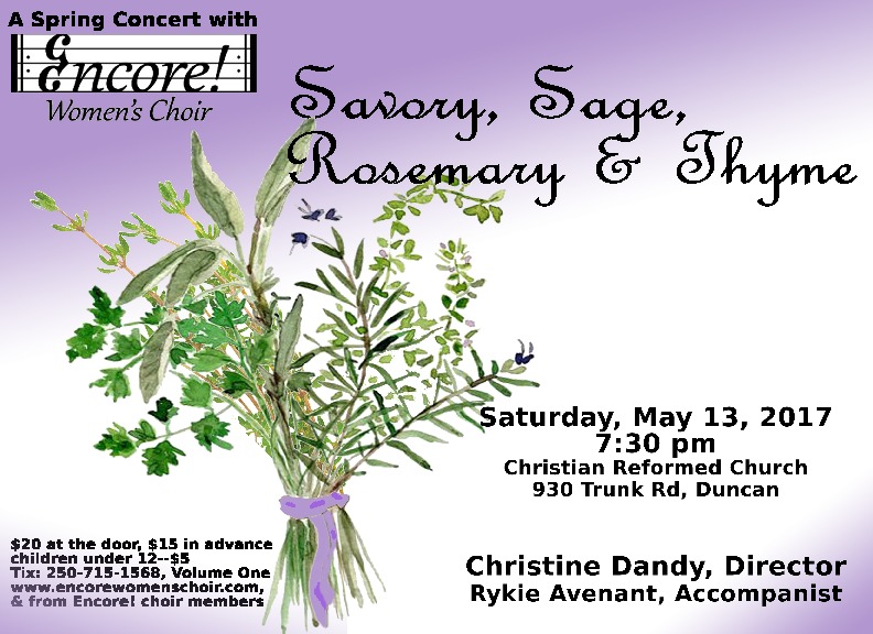 Savory, Sage, Rosemary & Thyme: Encore! Women's Choir  @ Duncan Christian Reformed Church May 13 2017 - Jan 11th @ Duncan Christian Reformed Church