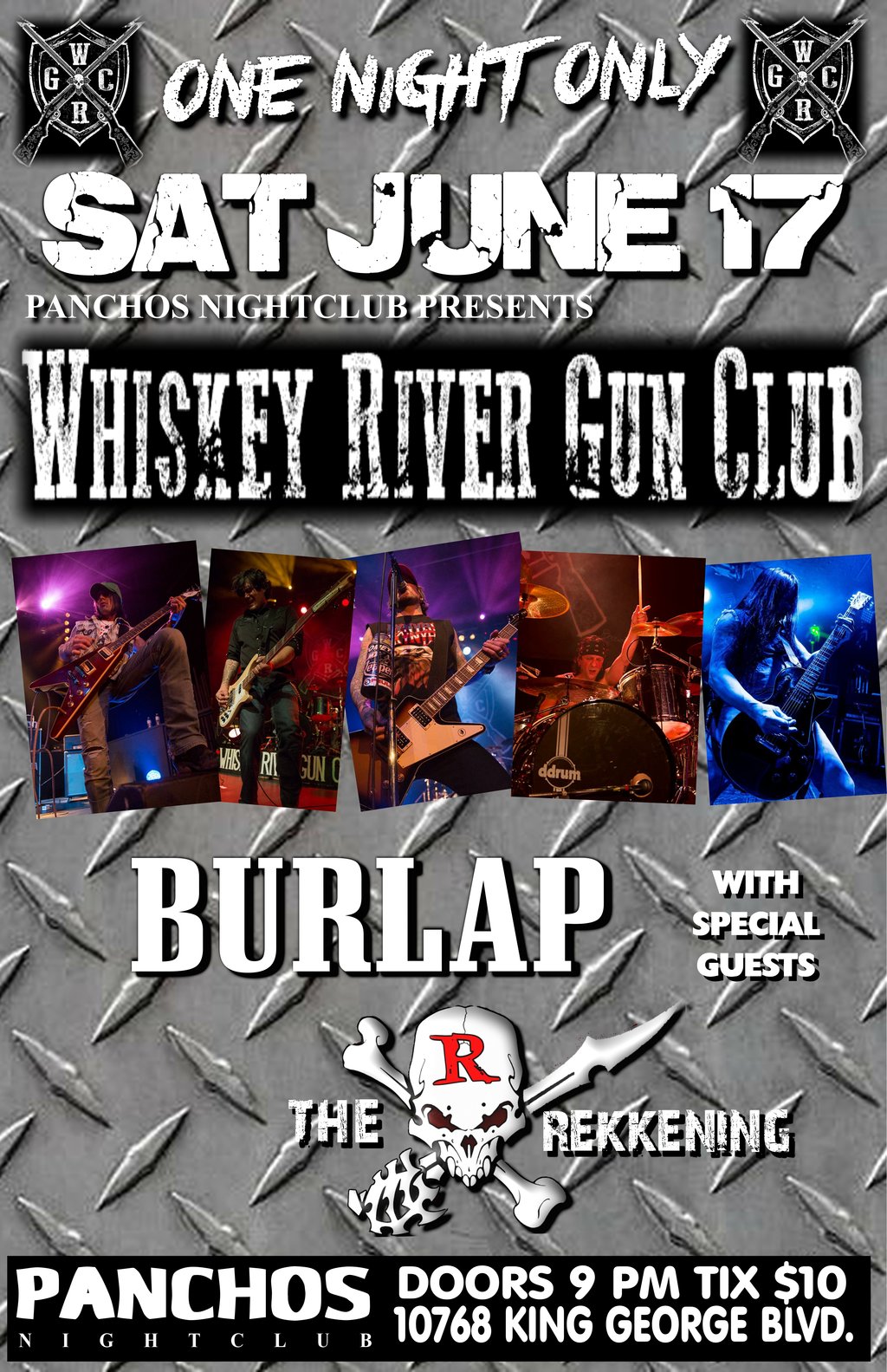 WHISKEY RIVER GUN CLUB, Burlap, THE REKKENING @ Panchos Nightclub Jun 17 2017 - Feb 18th @ Panchos Nightclub