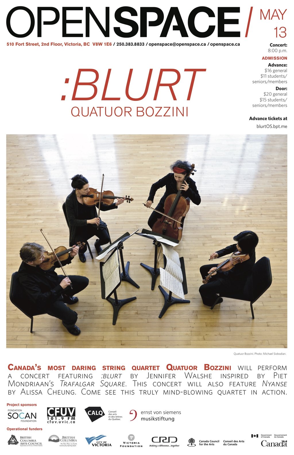 : Blurt: Quatuor Bozzini, Clemens Merkel, Stéphanie Bozzini, Isabelle Bozzini, Alissa Cheung
