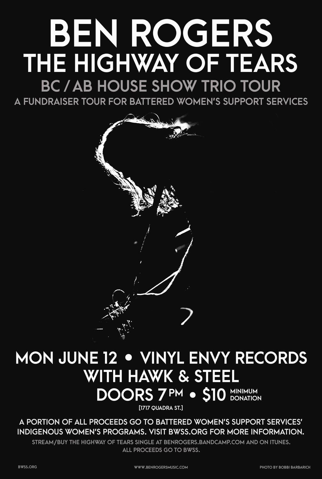 This is a fundraiser house show tour for Battered Women's Support Services and Ben is embarking on this tour in hopes of raising awareness about the ongoing issue of missing and murdered Indigenous women throughout Turtle Island.