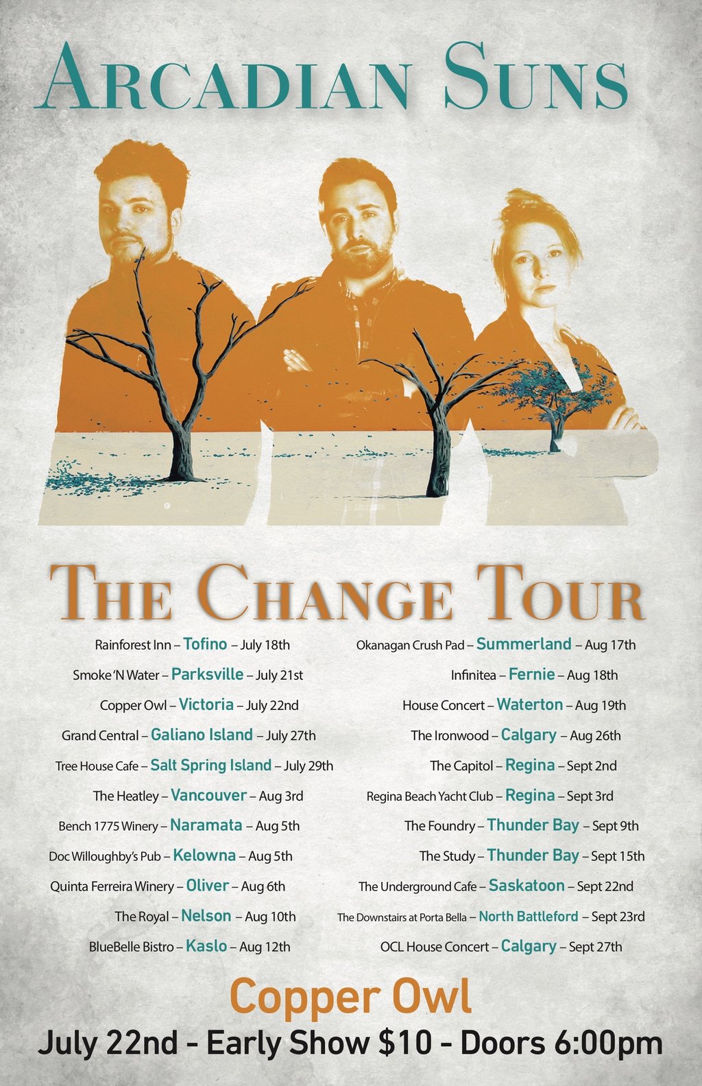 Arcadian Suns The Change Tour: Arcadian Suns @ Copper Owl Jul 22 2017 - Oct 3rd @ Copper Owl