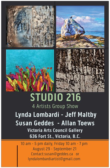 Victoria Arts Council Gallery,636 Fort Street, just west of the center doors and fountain on the Fort Street side of the Bay Center.
