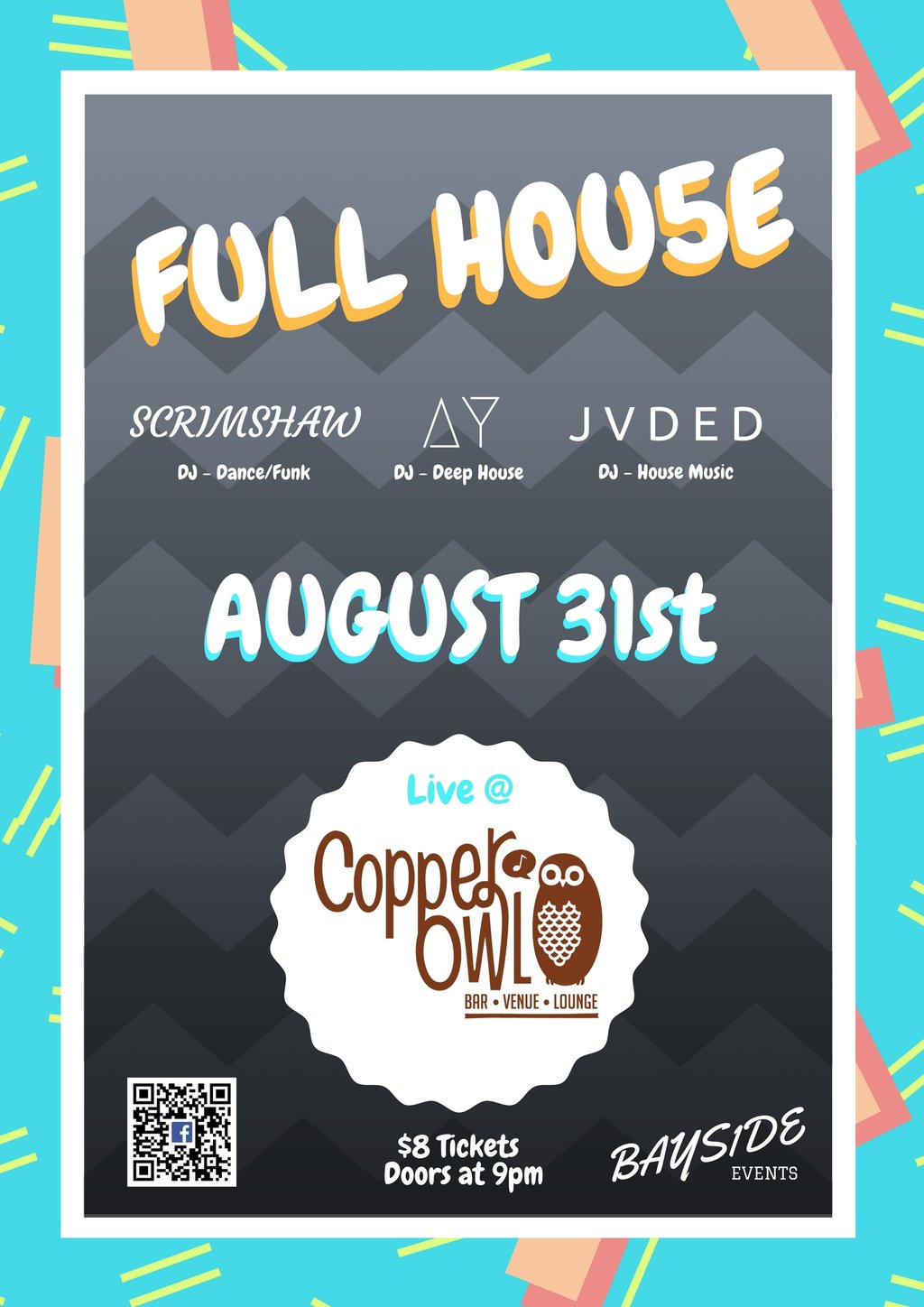 2's company, 3's a FULL HOU5E!: Scrimshaw, AY, J V D E D @ Copper Owl Aug 31 2017 - Dec 14th @ Copper Owl