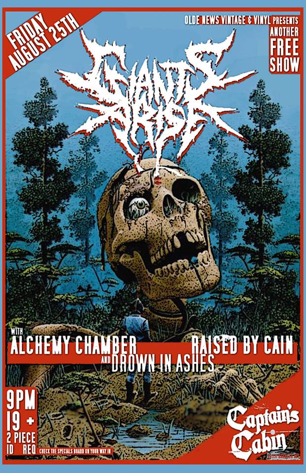 Giants Arise , Alchemy Chamber, RAISED BY CAIN, DrownInAshes @ Captains Cabin Pub Aug 25 2017 - Jan 12th @ Captains Cabin Pub